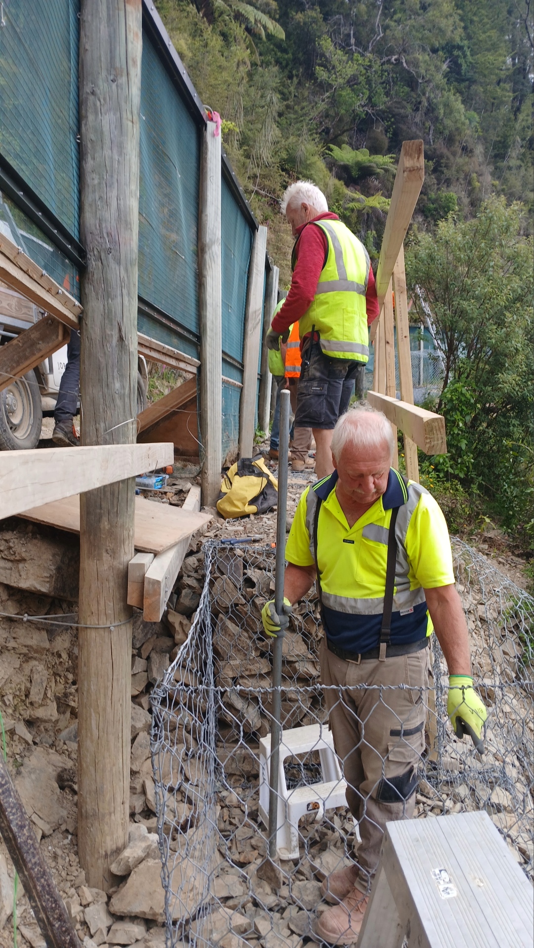 The most complex repair took place near Carters Creek, where the fence had been undermined. Over six months, a dedicated team of volunteers—working alongside staff and interns—stabilised the slope, rebuilt the internal track, and upgraded stormwater systems to prevent future slips. Completing this work with contractors alone would likely have consumed most of the recovery fund.