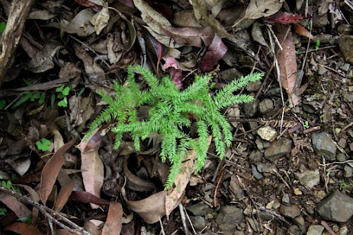 Climbing clubmoss is one of three native lycophytes found in the Sanctuary. These have often been confused in the Sanctuary with the invasive exotic climbing asparagus and been pulled out.