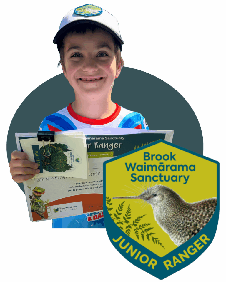 Each Junior Ranger receives a welcome pack including an embroidered badge, certificate, activity booklet, and colouring sheets to help them explore, learn, and protect — both at the Sanctuary and in their own backyards. Members also enjoy unlimited entry to the Sanctuary across the year, priority access to Junior Ranger adventure activities, and a quarterly newsletter, The Waimārama Chronicles, featuring stories, challenges, and conservation tips.